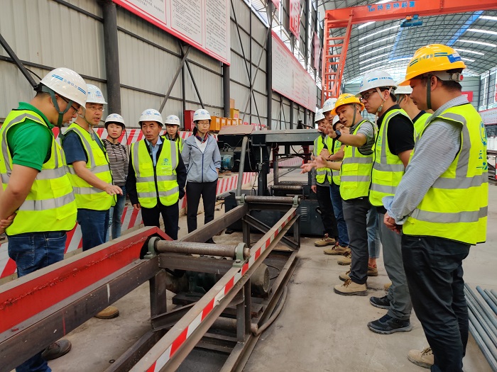 檢查組先后查看了2#鋼筋加工棚、2#拌合站、6#承臺施工現(xiàn)場標準化建設(shè)、安全文明施工、現(xiàn)場施工質(zhì)量管控及企業(yè)文化宣傳情況。重點對成品、半成品的鋼筋籠及其制作工藝,拌合站設(shè)施設(shè)備、料倉材料質(zhì)量,樁基成孔及混凝土澆筑過程質(zhì)量把控,進場機械設(shè)備、用電規(guī)范、施工安全防護措施等逐一檢查,對鋼筋滾絲機加工所需附屬傳送機床的傳送帶所安裝的安全防護罩、拌合站及鋼筋加工棚標準化建設(shè)提出表揚。