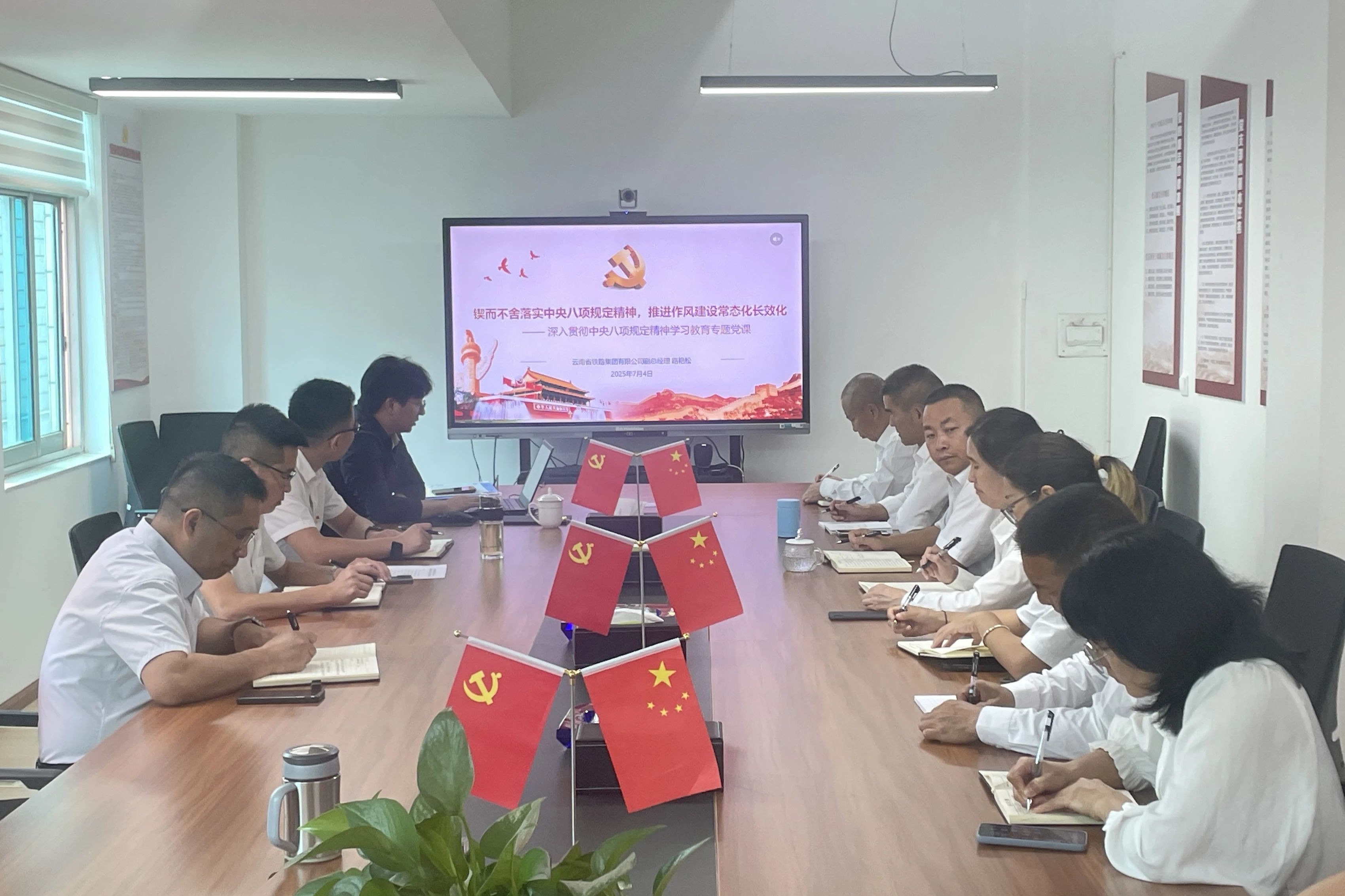 • 7月4日,公司黨委委員、紀委書記陳仕海為聯(lián)系黨支部第六直管項目部黨支部、分管部門、關(guān)鍵崗位人員講授深入貫徹中央八項規(guī)定精神學習教育專題黨課?!?